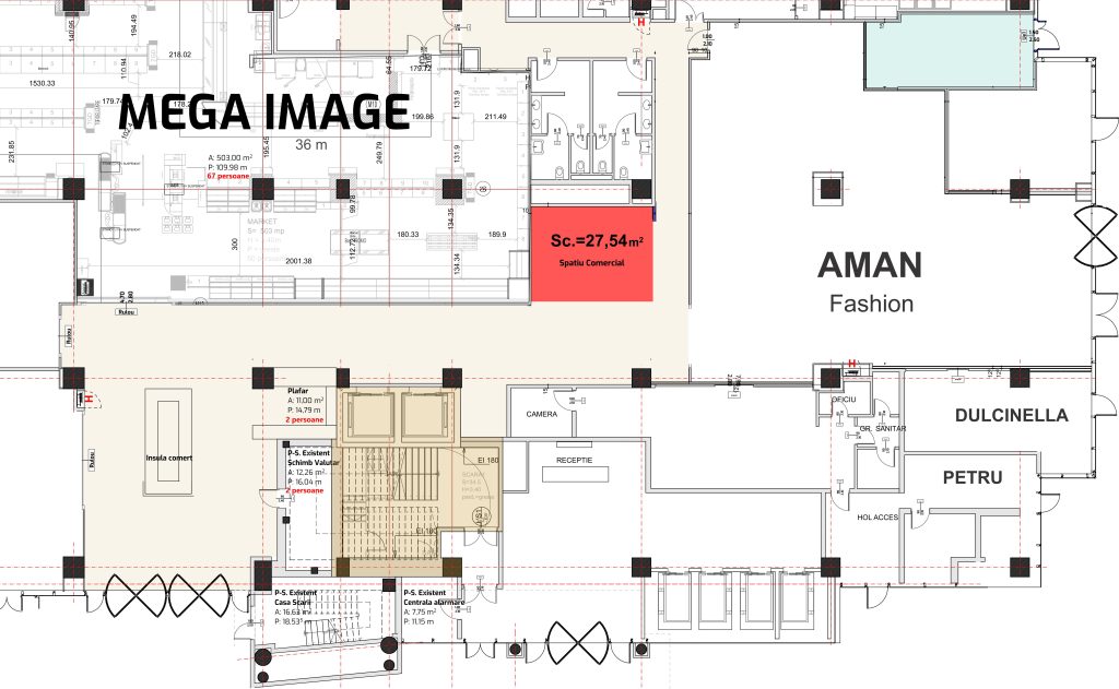 - Pozitionare: in mijlocul zonei comerciale de parter;